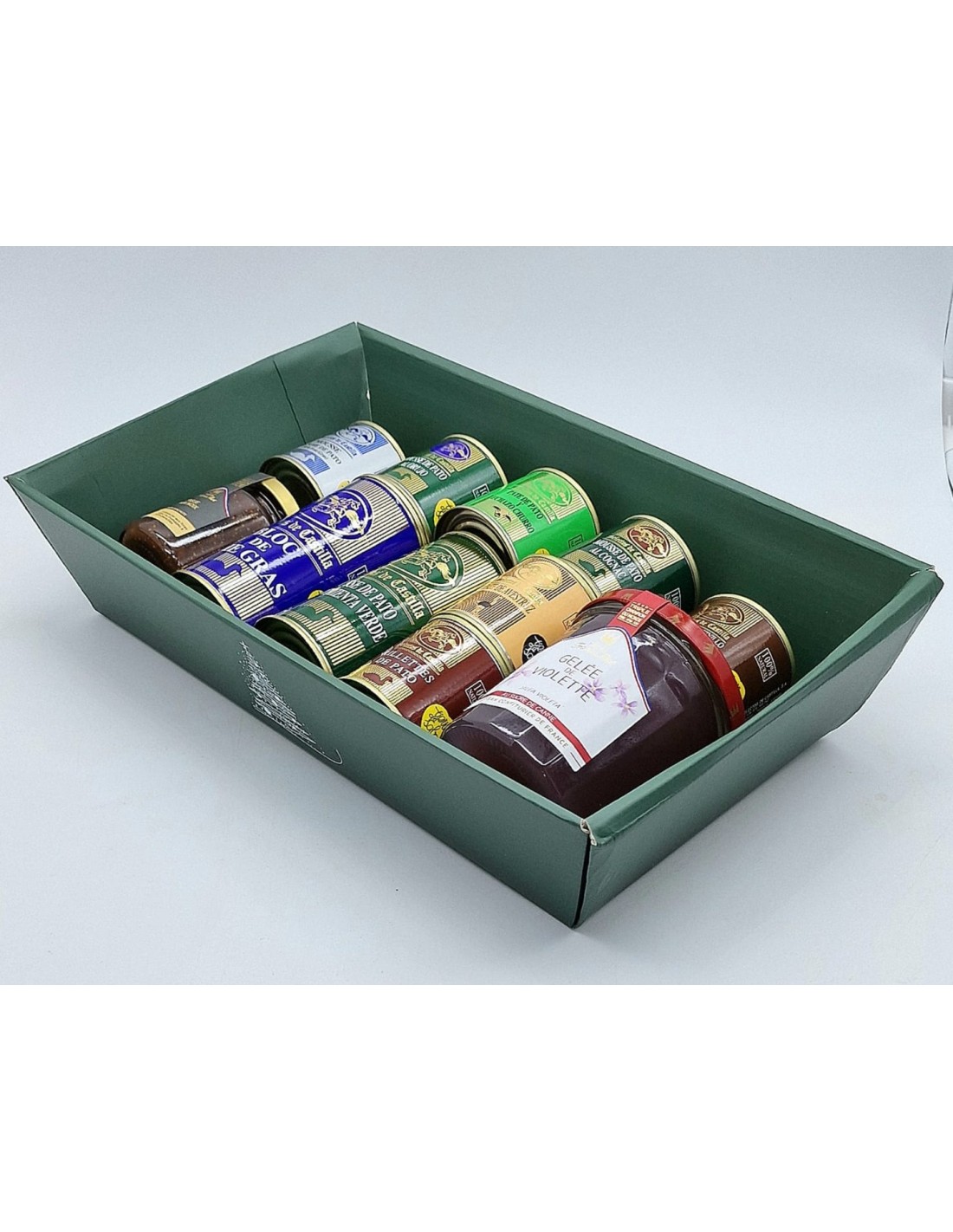 Cesta rectangular verde que contiene: